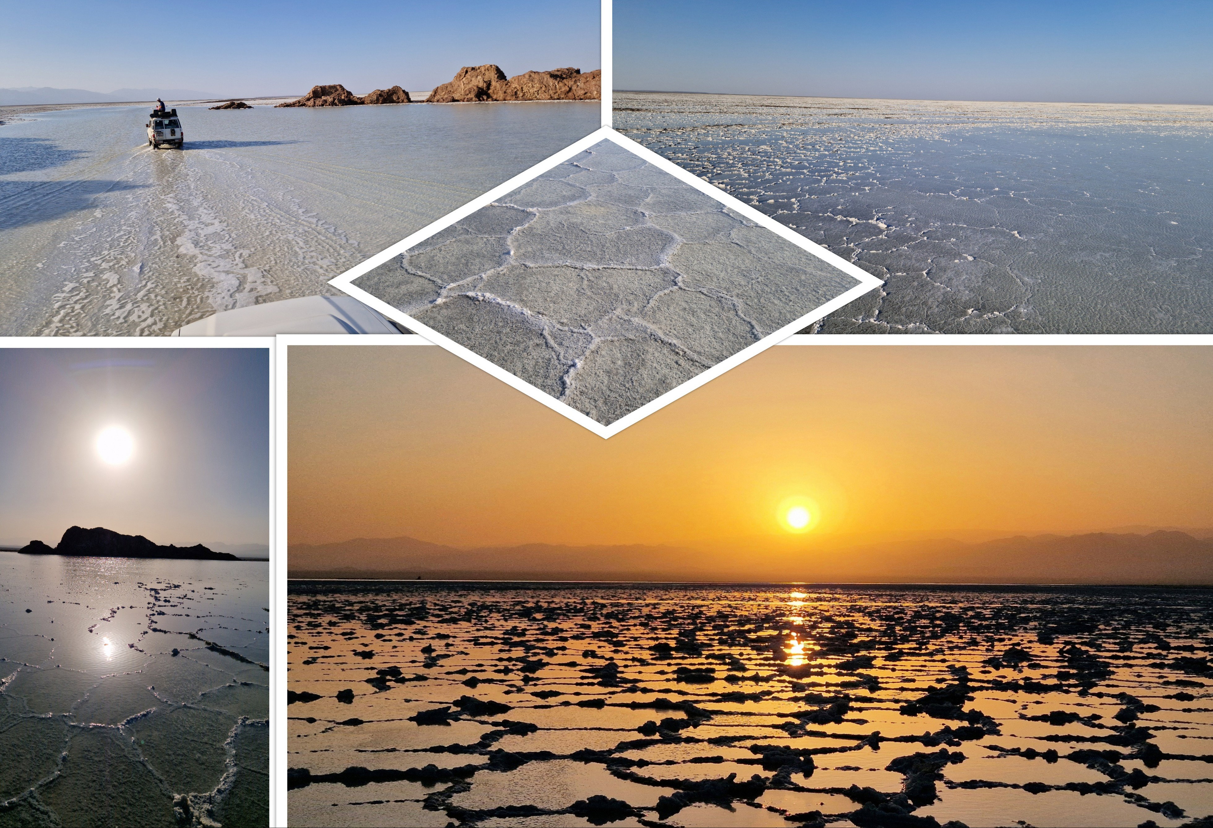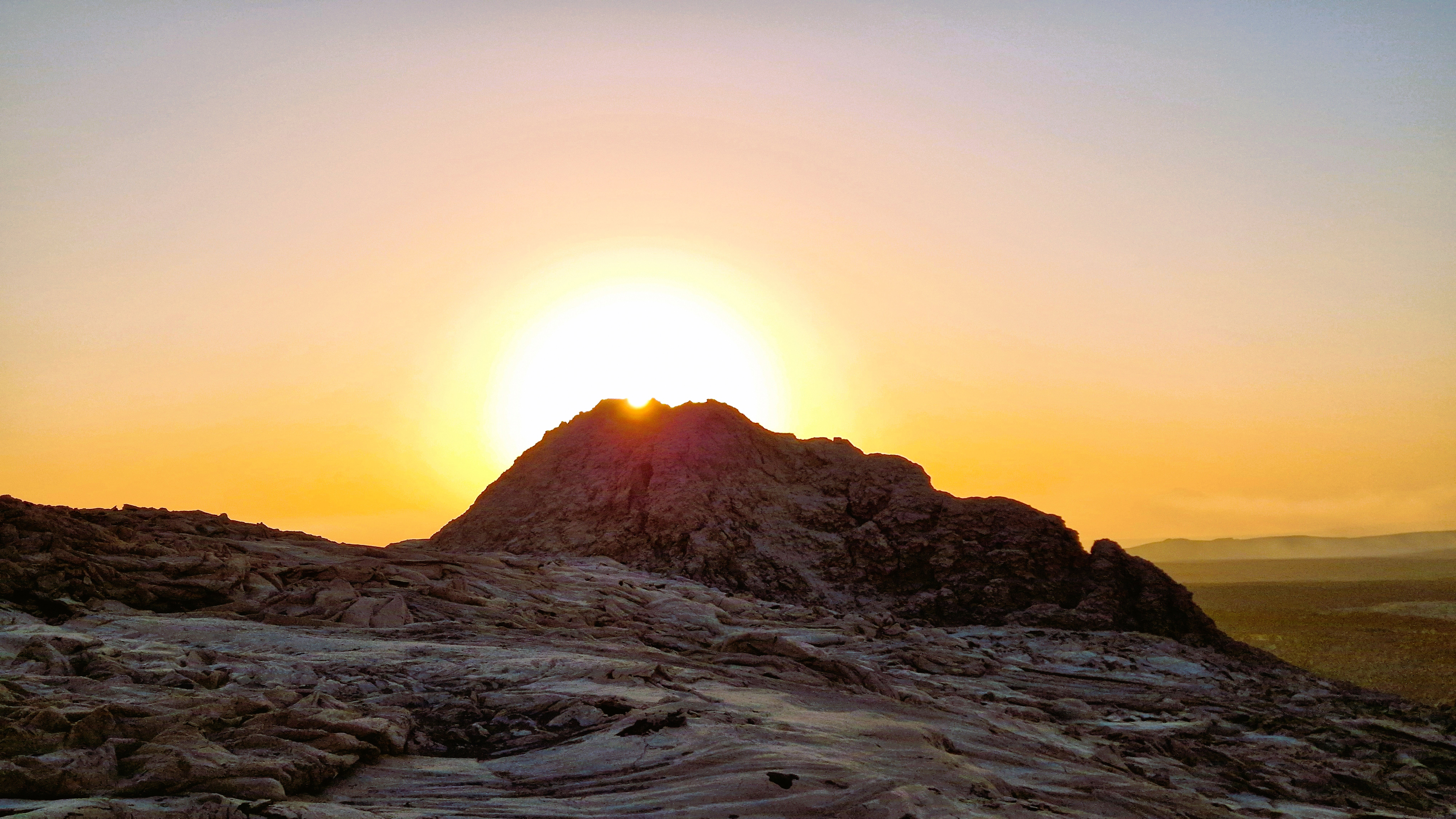 Un petit tour de nouveau sur le sel, le lendemain matin pour le lever du soleil, et nous avançons vers le Dallol, dépression avec ses lacs de fluor, le désert le plus chaud au monde.