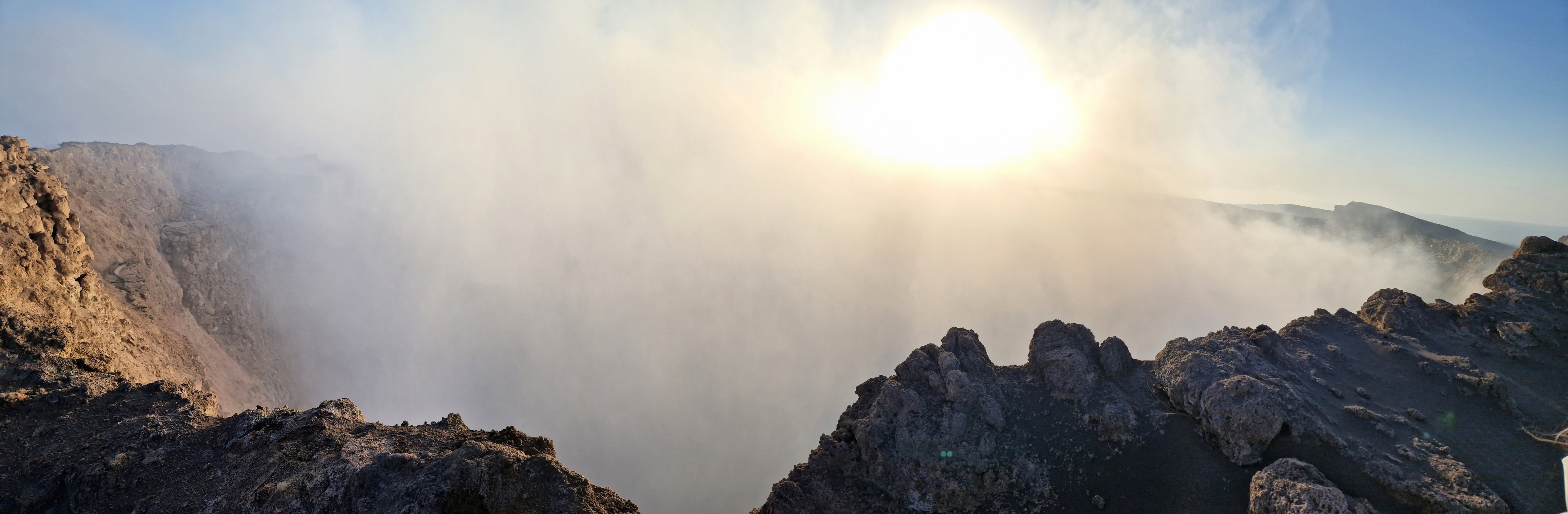 Les photos que j'avais vues montraient le lac de lave permanent et visible du bord du volcan. Malheureusement, il semble qu'une partie de falaise soit tombée dans le cratère dernièrement, et le cratère est maintenant empli de fumée, donc plus rien de visible. A priori, cela sera comme ça pour quelques décennies.