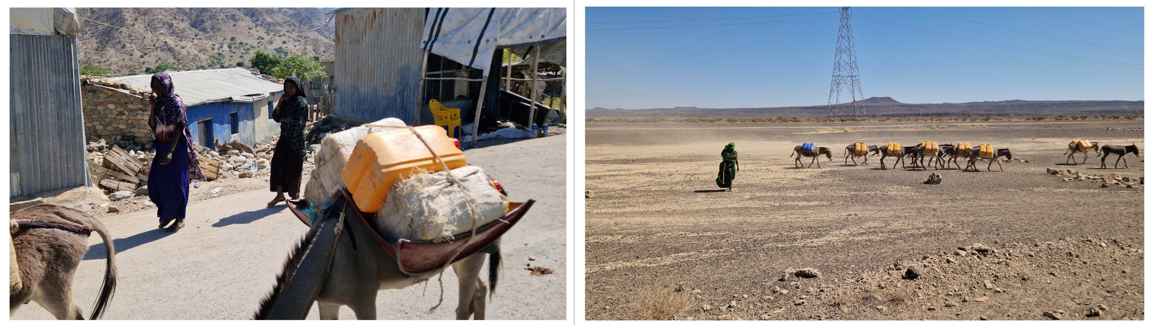 MAIS .... il n'y a pas d'eau courante, et les femmes et enfants vont à un puit, une source, une marre d'eau pour ramener des bidons d'eau à la maison. Parfois, elles feront 7 km aller et autant (mais chargées de 25 litres d'eau) au retour.