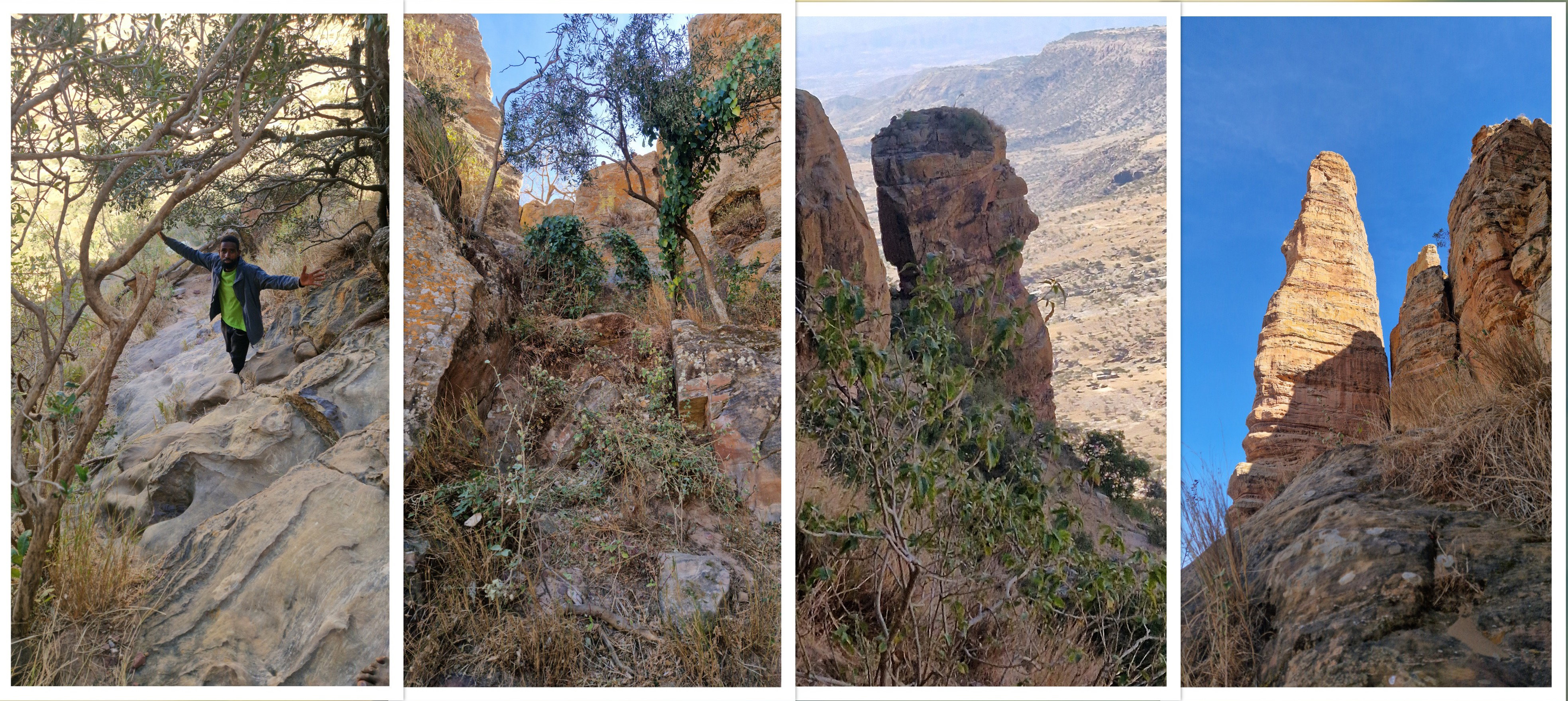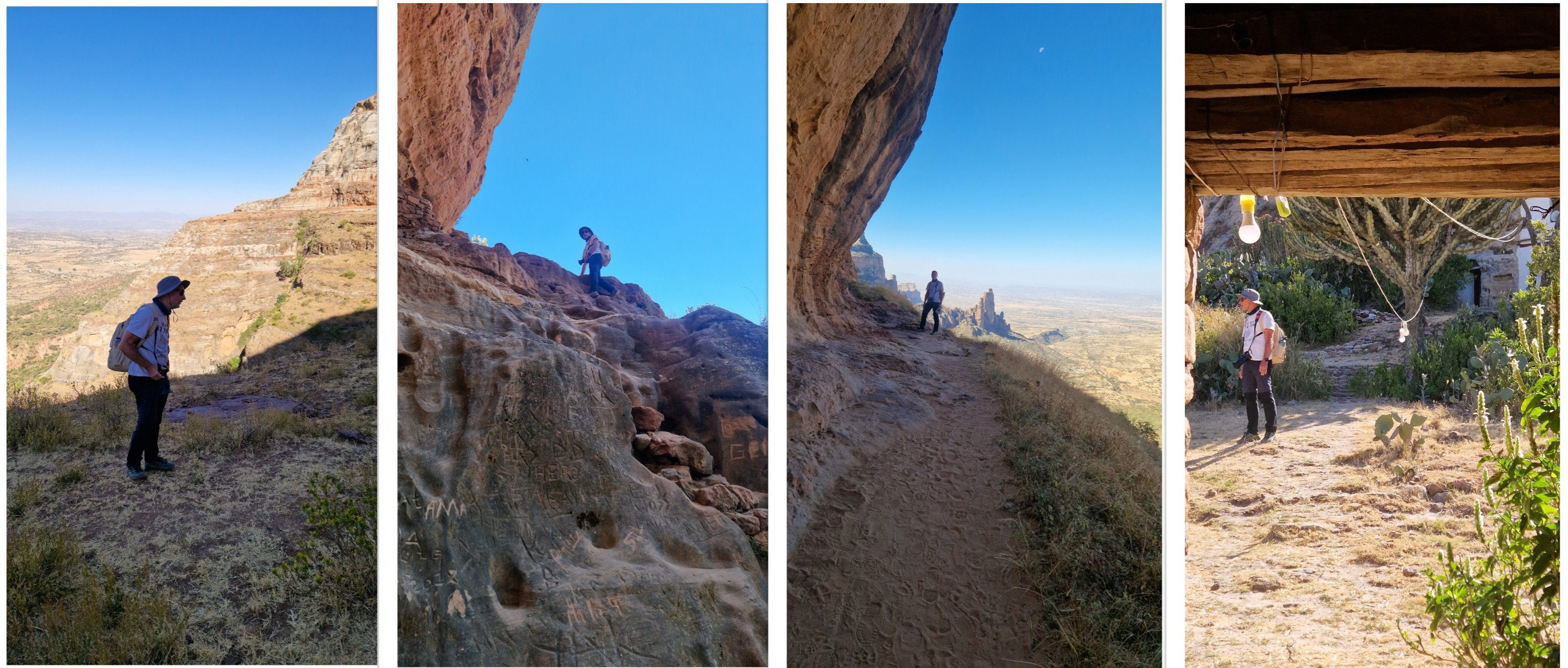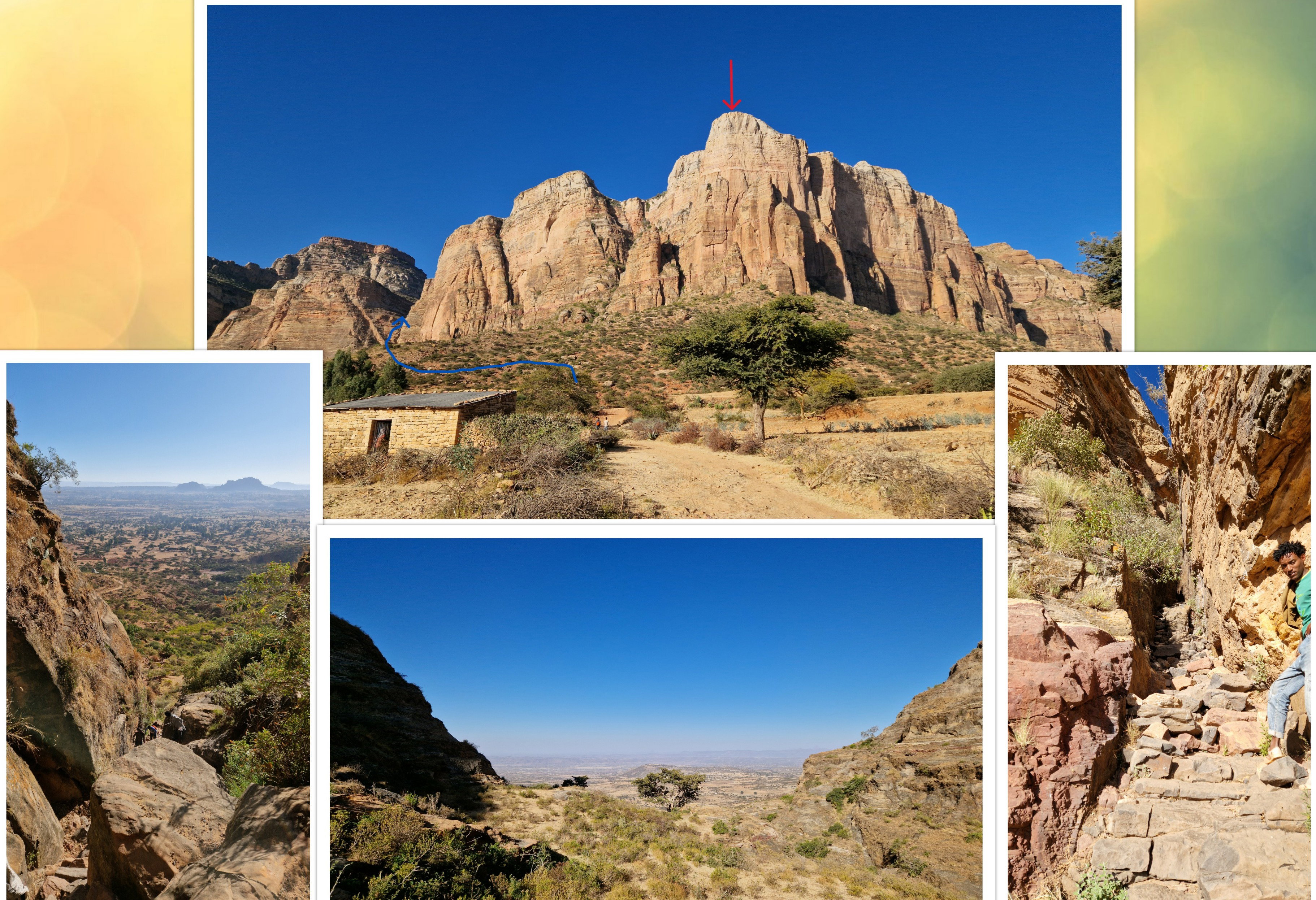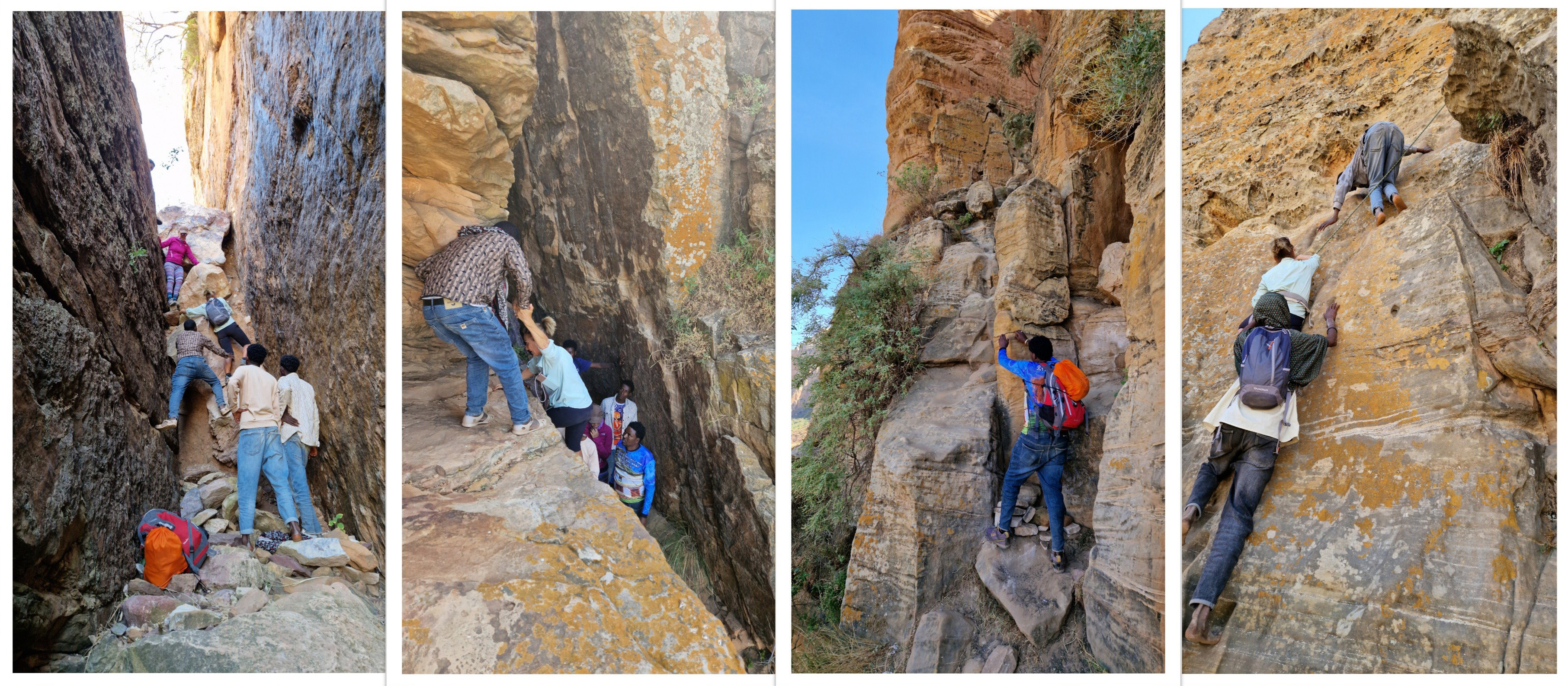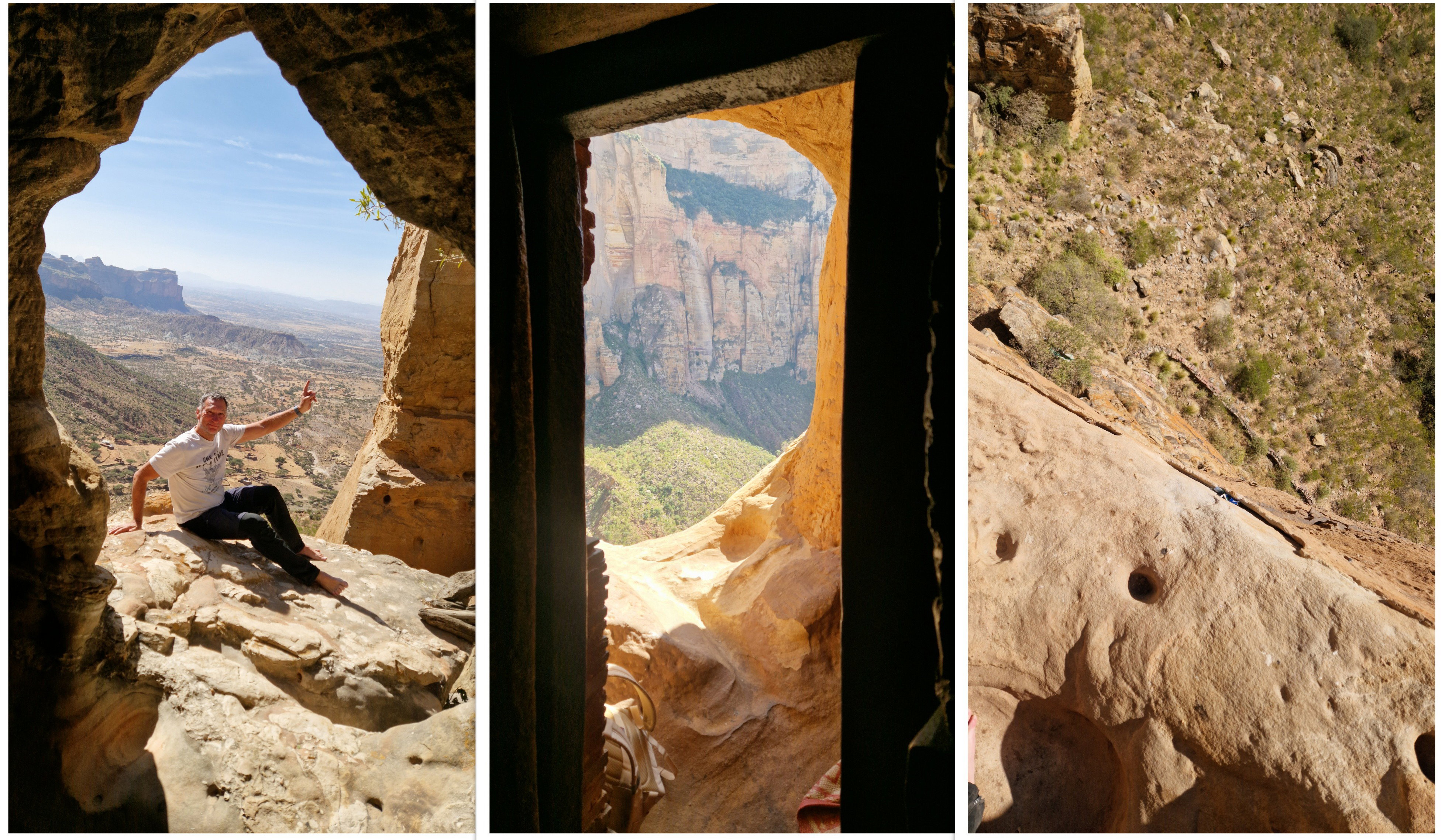 L'église Abune Yemata est encore plus spectaculaire que celle que nous venons de voir. Celle-ci est perchée à près de 200 mètres du sol sur la paroi d'une falaise. Aucun chemin pour y monter, ce qui explique nos acrobaties pour arriver en haut.