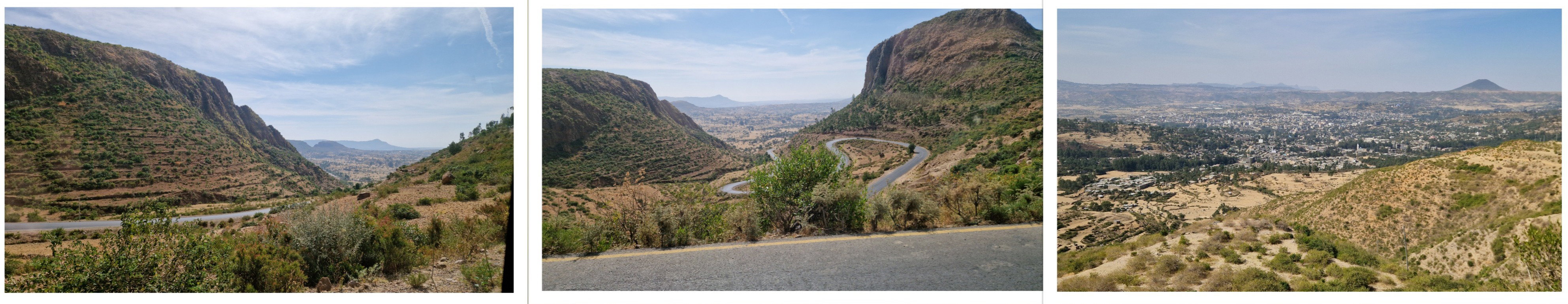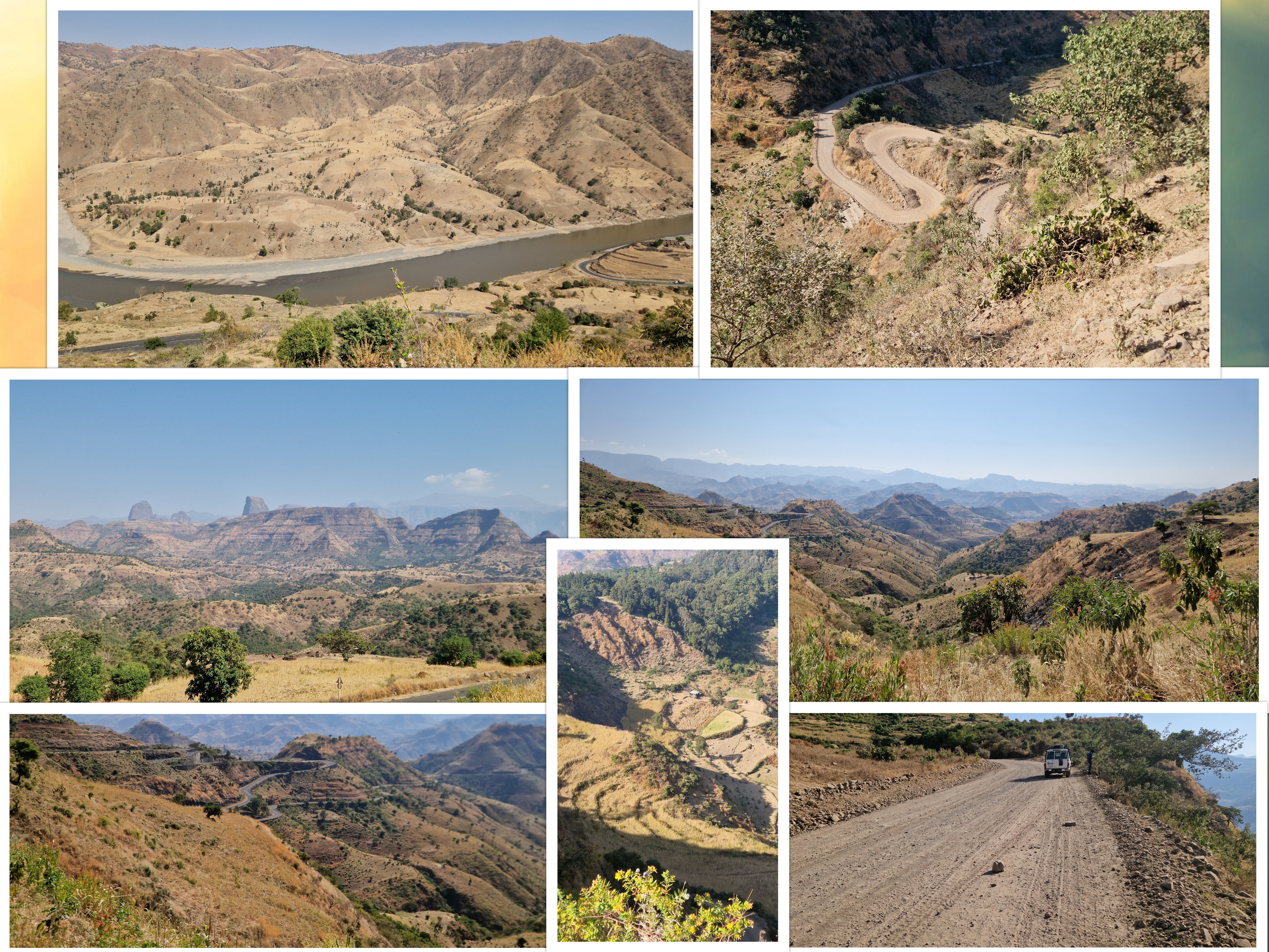 Le principe des routes en Ethiopie : elles suivent le terrain, très peu de ponts ou tunnels. Comme le pays est composé de nombreux plateaux, et de vallées, la route monte, descend avec d'interminables lacets.