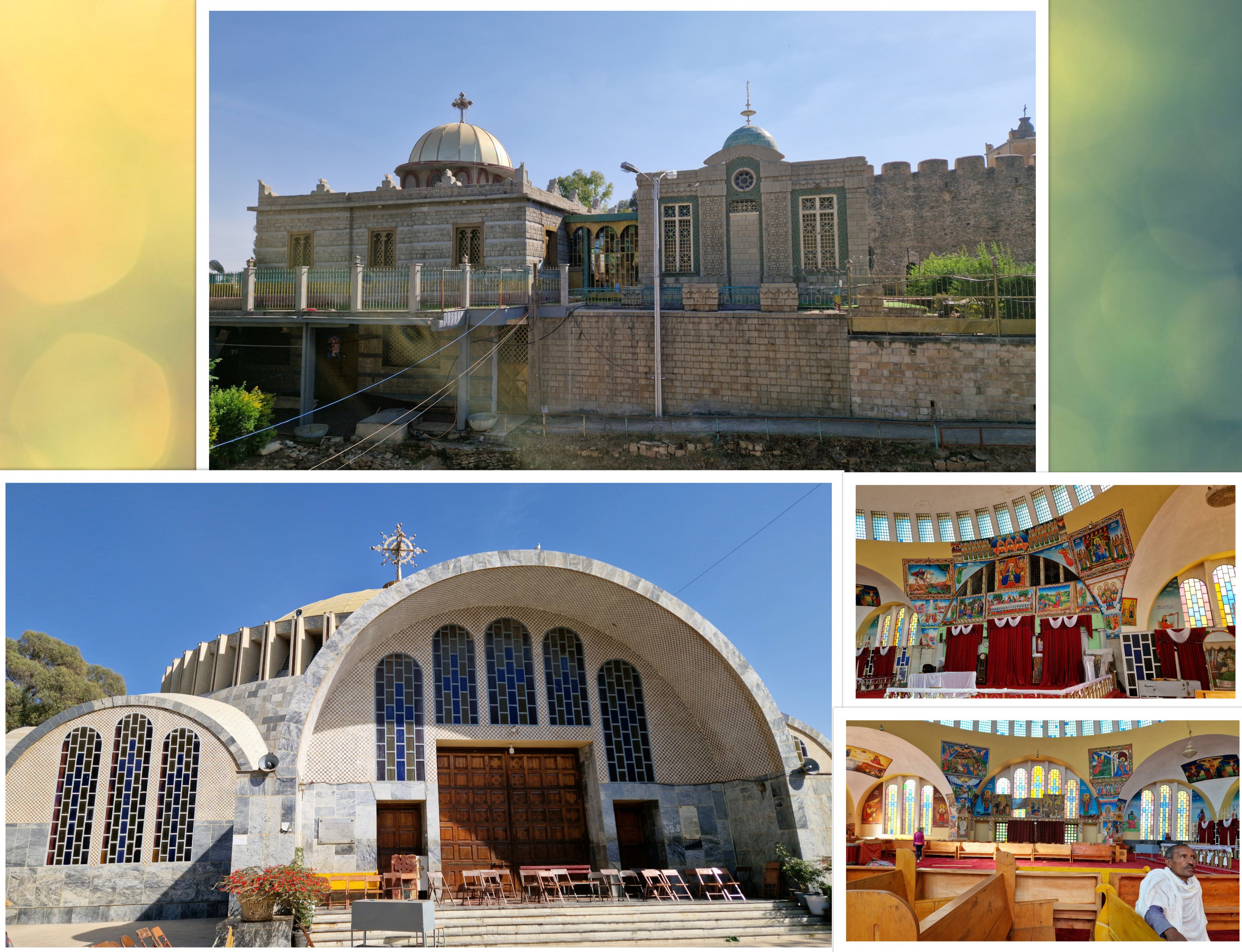 Cote à cote, l'église Ste Marie de Zion, et l'église moderne construite par Haylé Sélassié.
