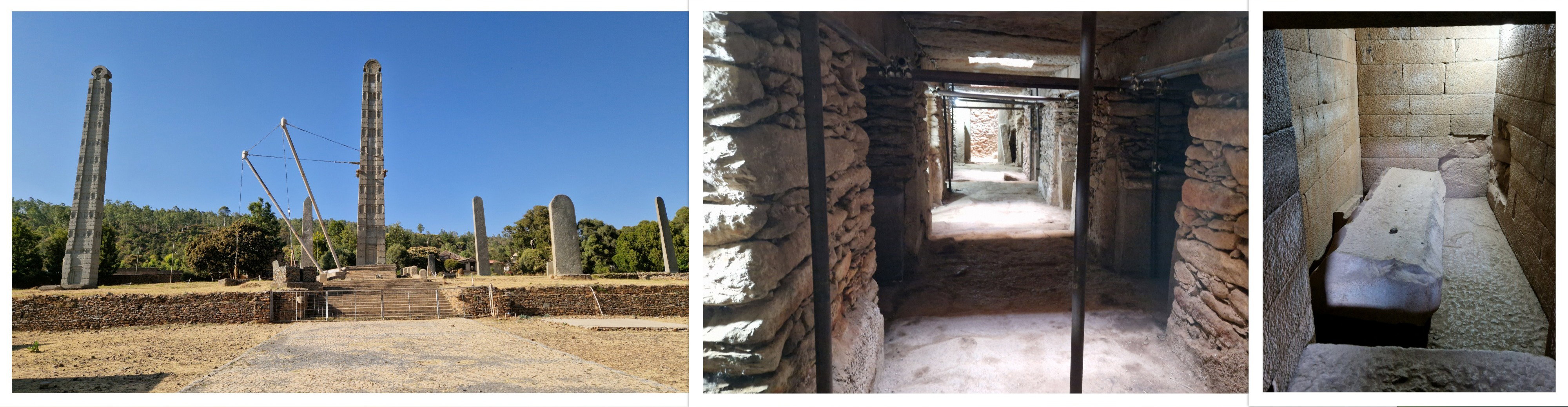 Axoum, c'est aussi un champ de stéles monolithiques de 20 mètres de hauteur, avec des tombes au-dessous. Ce sont les Rois et notables qui ont été enterrés ici. Cela date du 4ème siècle.