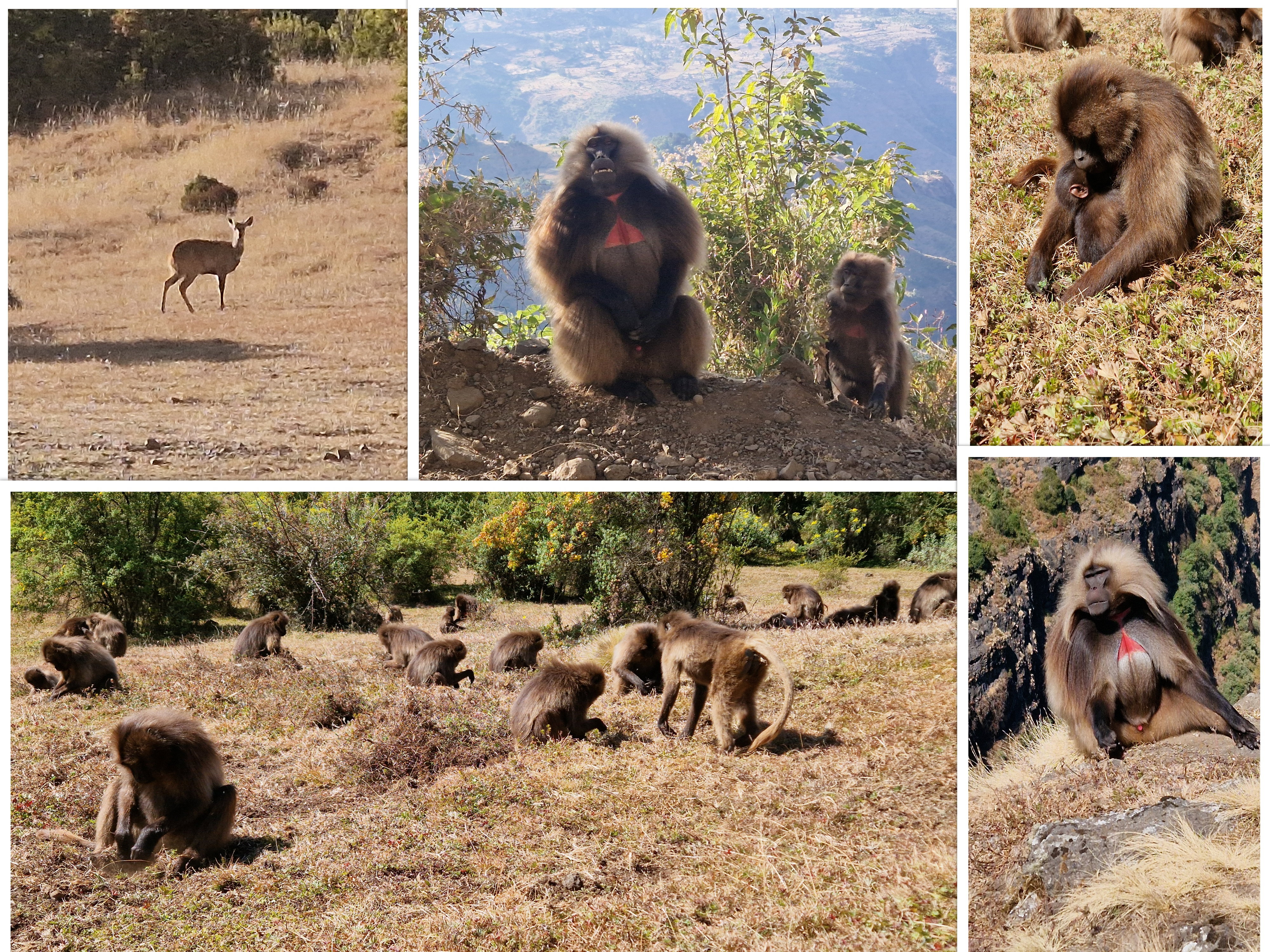 La faune est unique, avec, en particulier le singe gelada au poitrail rouge, le bouquetin d'Abyssinie qui se cache bien (et je ne l'ai pas vu !).