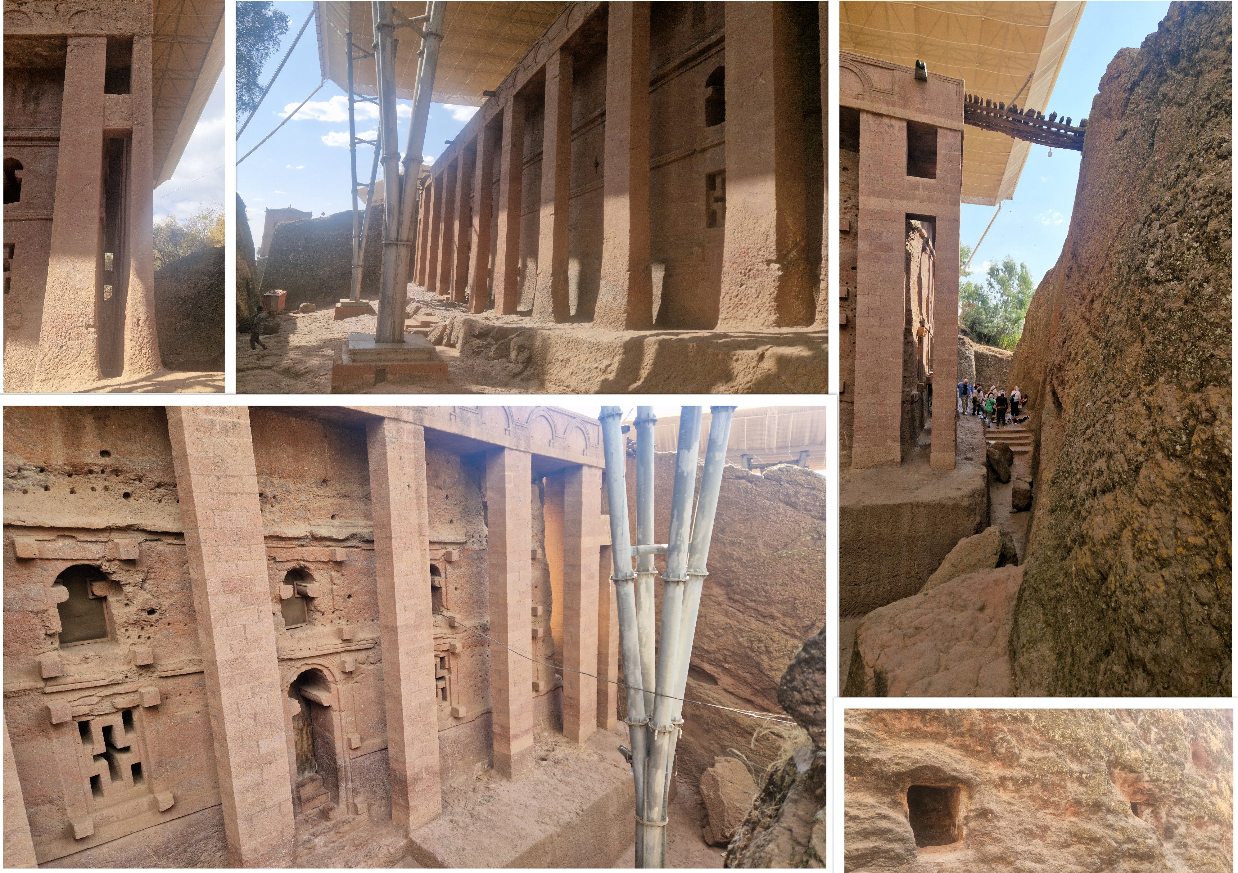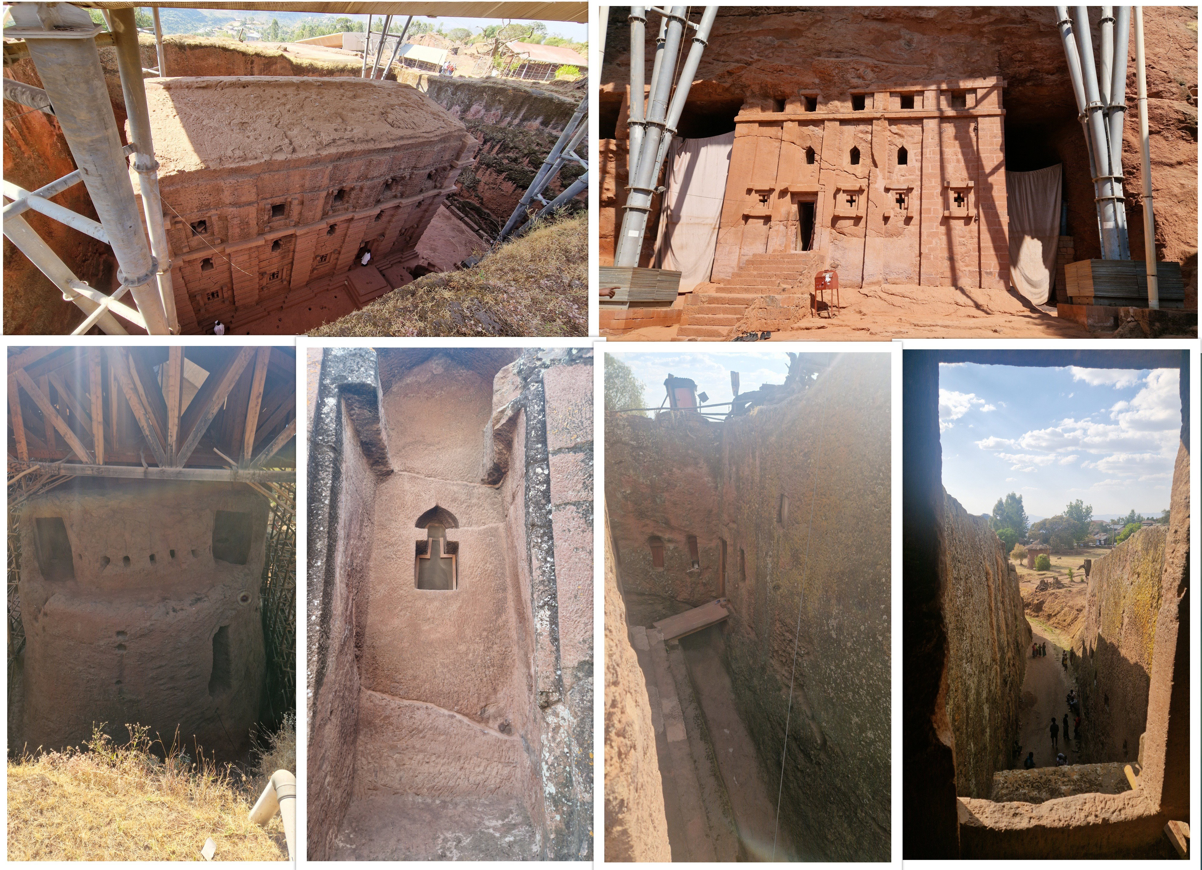 Les églises, au nombre de 11, ont été construites sous le règne de Lalibela (traduction : aime le miel). Ces églises rupestres sont creusées directement dans la roche volcanique, à partir de la surface de la terre, en descendant. Elles sont reliées par des tunnels et passages souterrains.
