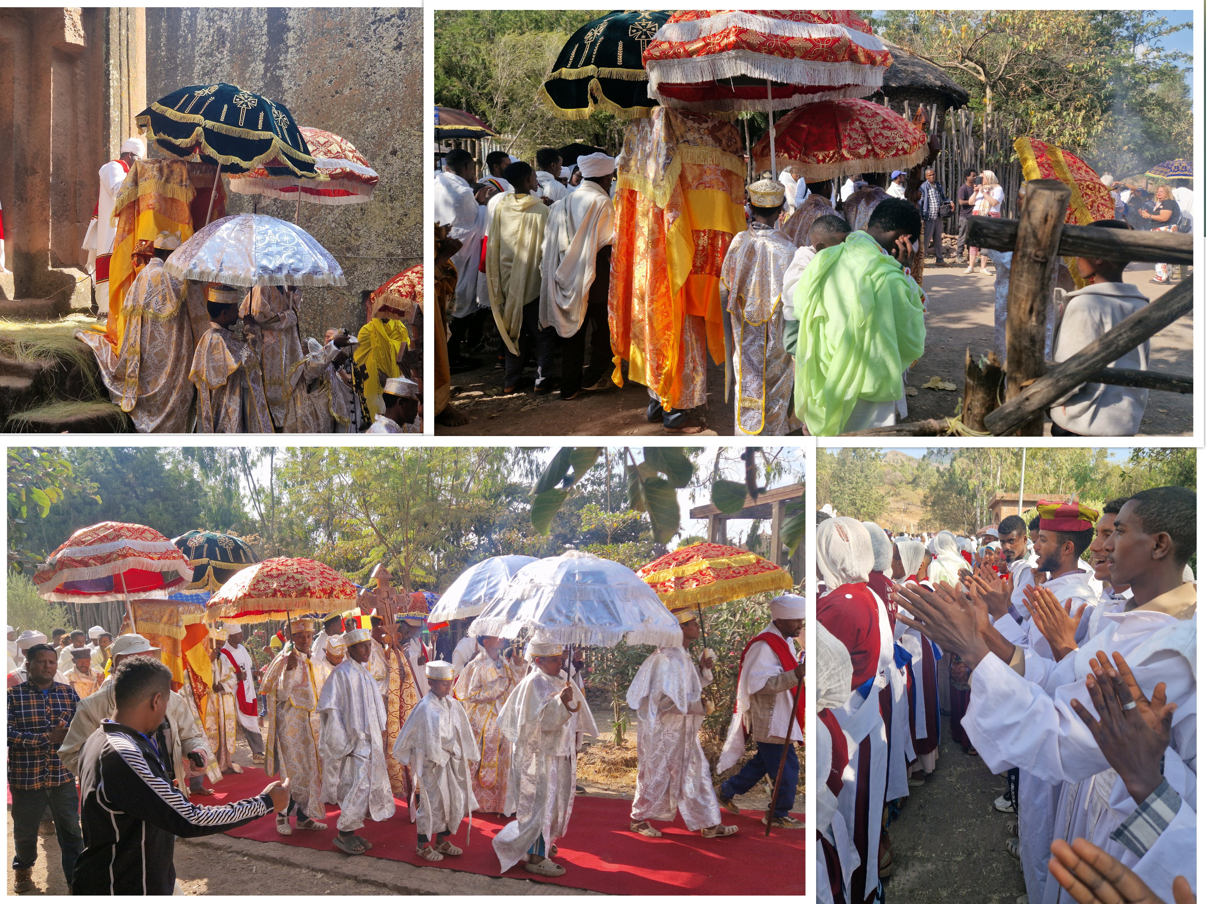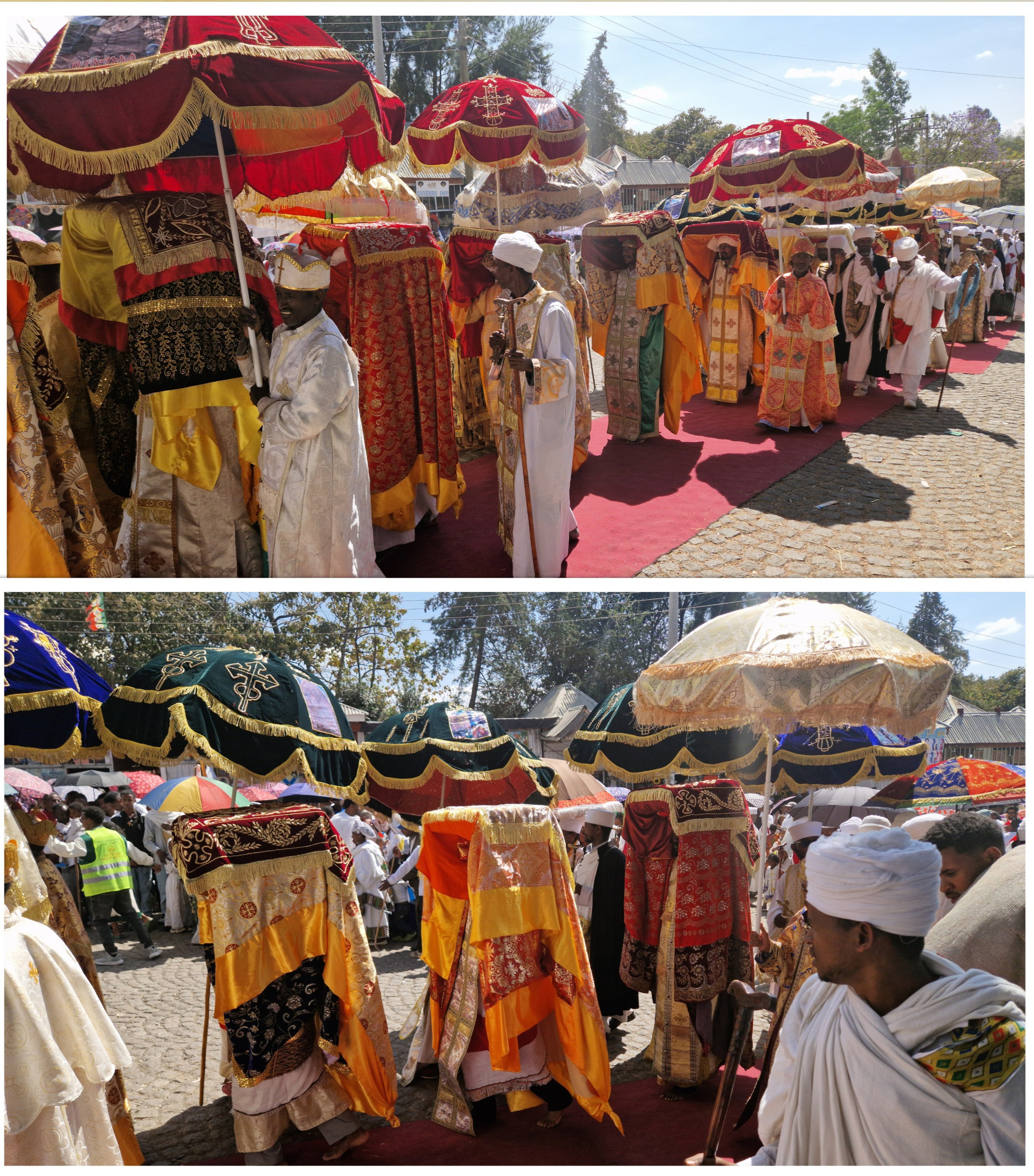 De grandes processions ont lieu pour emmener les copies de l'Arche de l'Alliance à un lieu où elles resteront 3 jours. Chaque église a sa copie, donc chaque église a sa procession.
