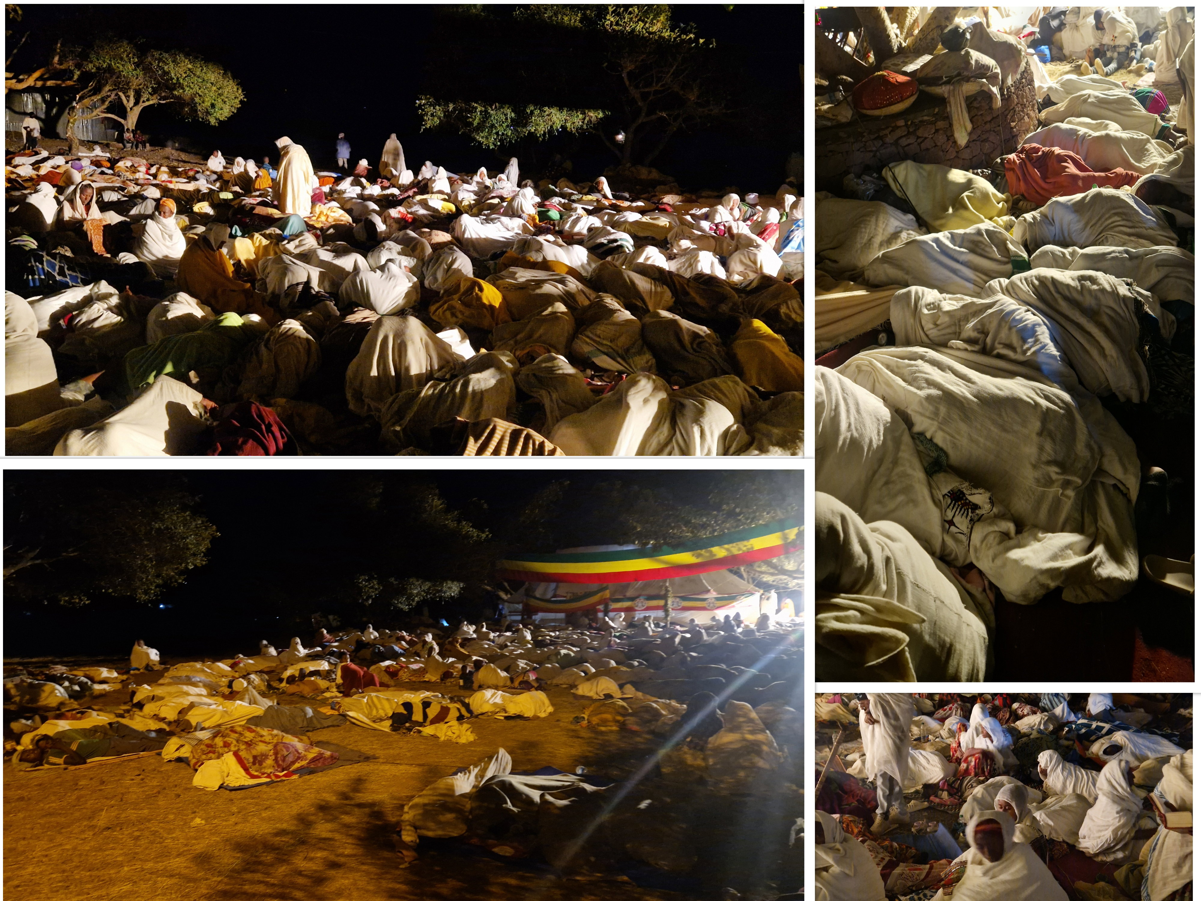 Le soir, tout le monde se rassemble sur un grand terrain (qui ne sert qu'à Timkat), et dort sur place, emmitoufflé dans leur grands pagnes blancs (sales !!!). On dirait un champ de momies !