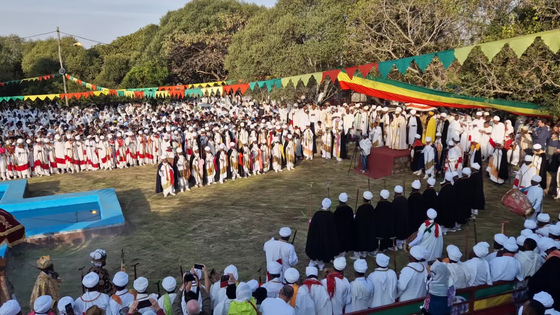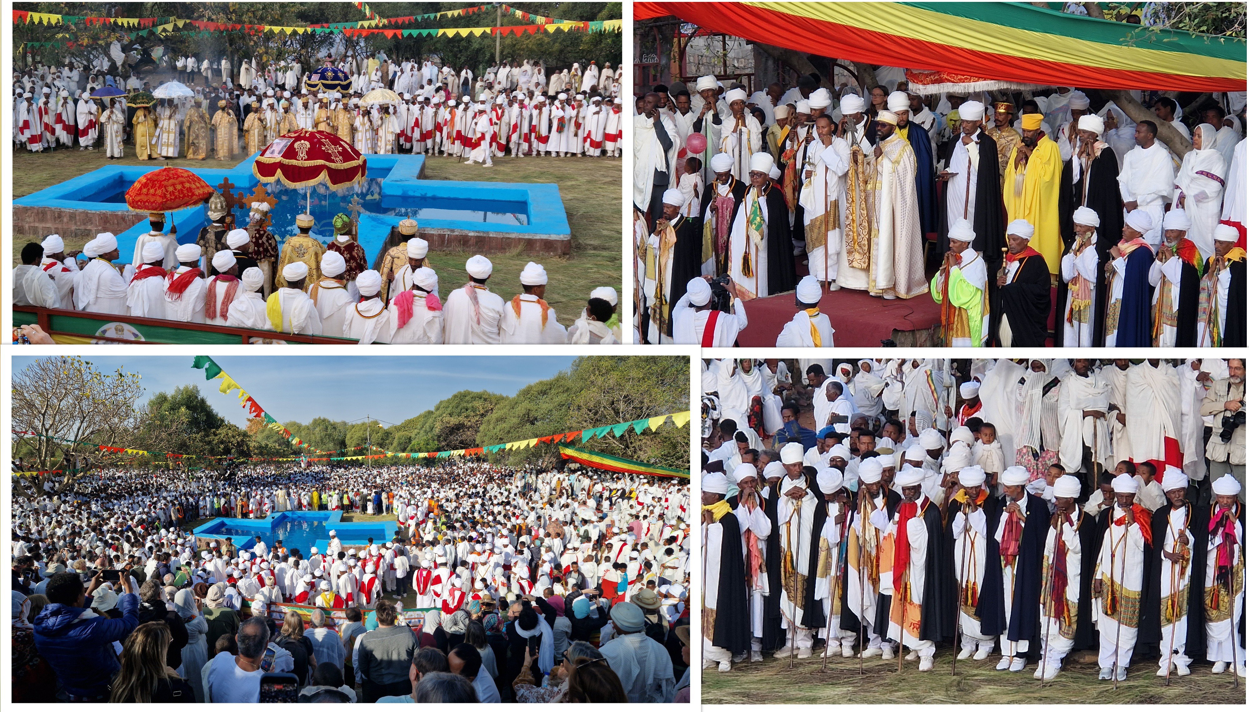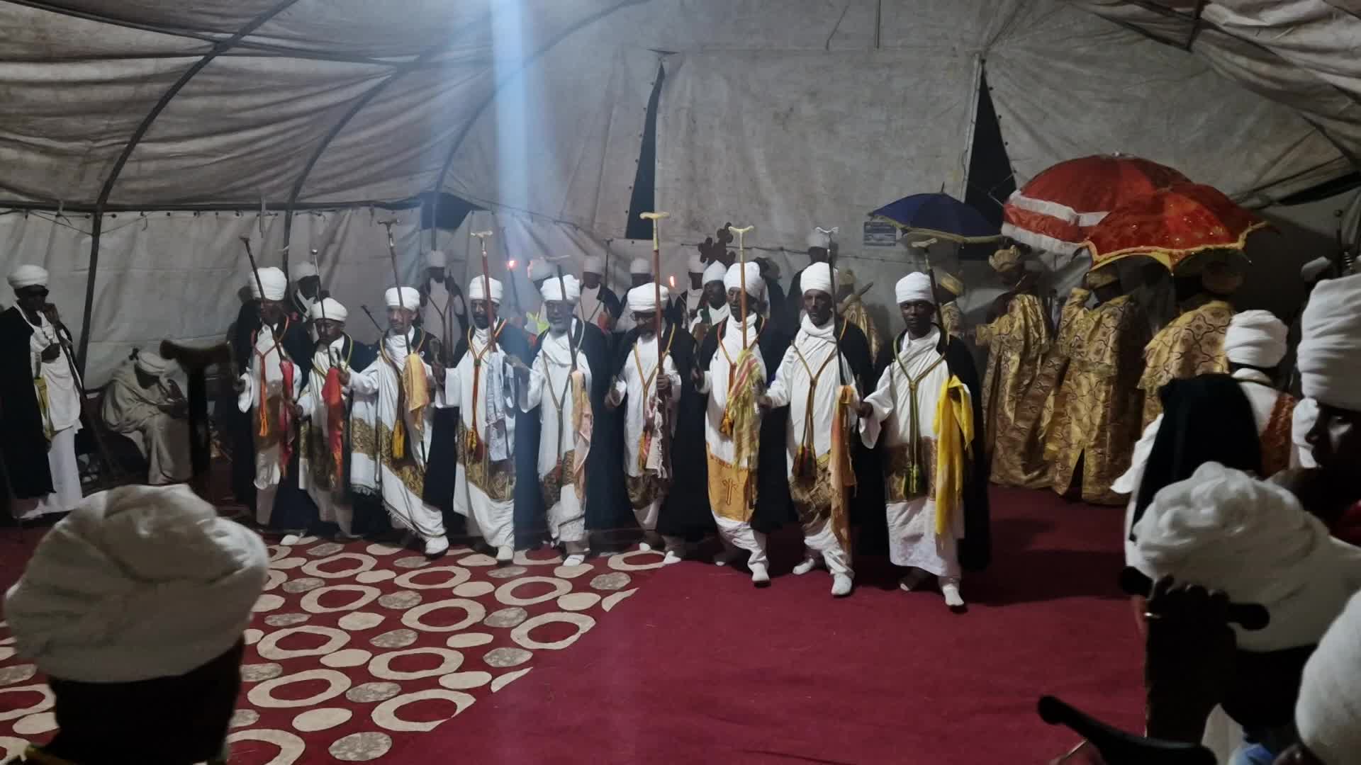 Les prêtres sont habillés en blanc, ceux qui portent l'Arche de l'Allaince sont vêtus de robes très colorées. Les prêtres vont prier, chanter et danser toute la nuit, et le lendemain, aura lieu la cérémonie de l'eau (baptème).