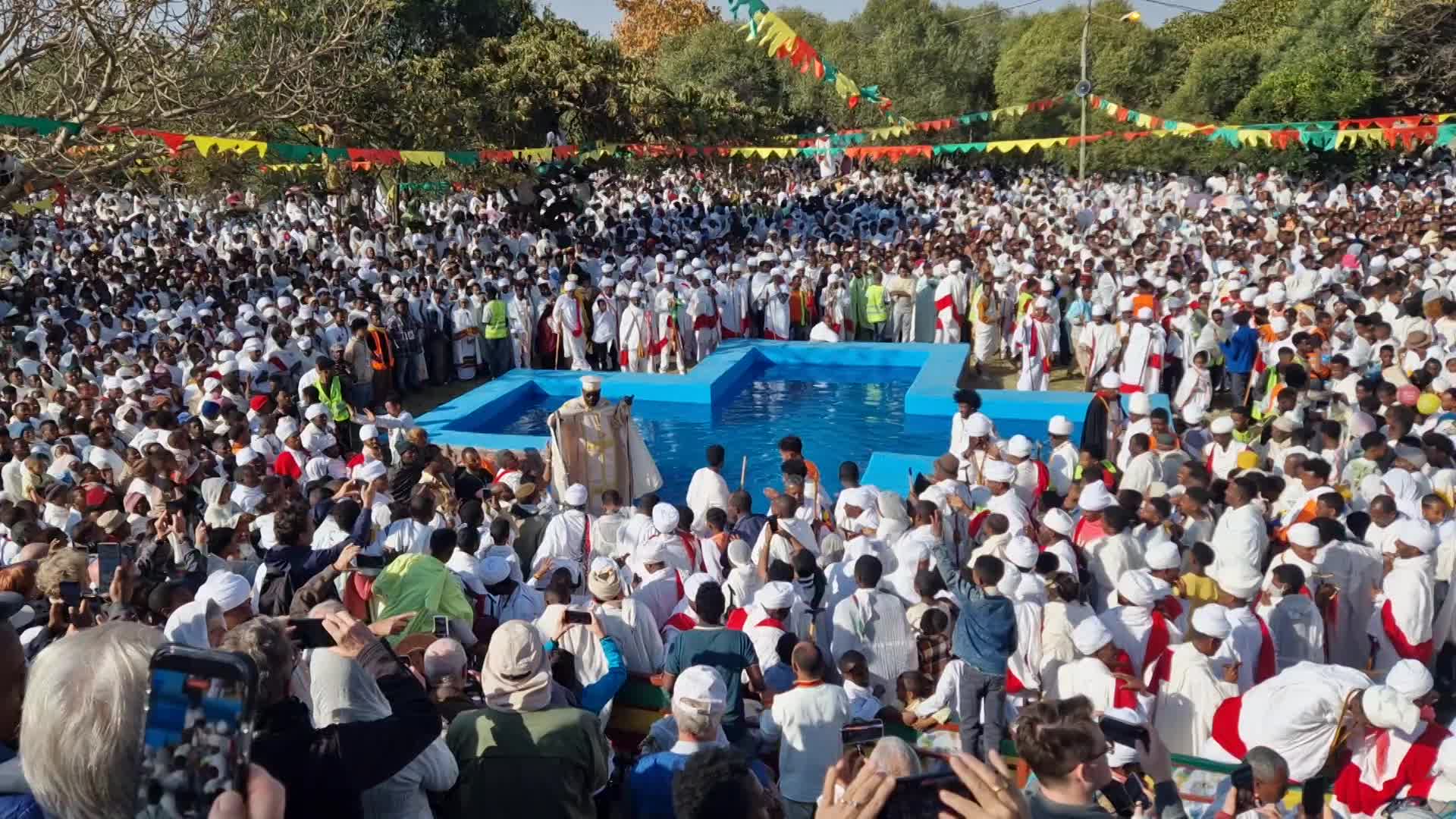 Des milliers de prêtres participent dans toute l'Ethiopie à cette fête. A Gondar, le baptème a lieu dans la piscine.