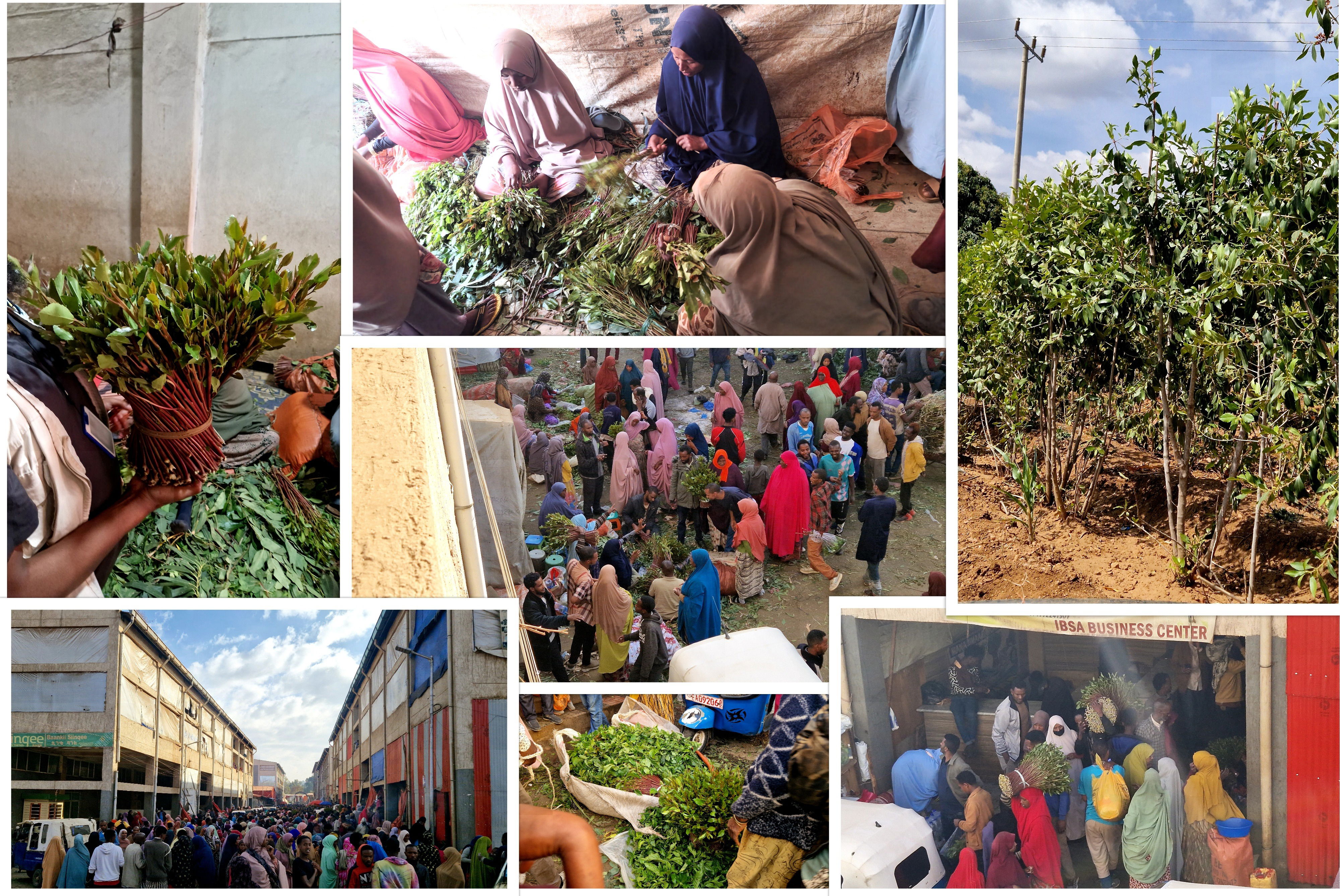 Le qhat joue un rôle économique majeur, car sa vente est une source de revenus importante pour les agriculteurs. Arrivés dans la région d'Harar, les champs sont reouverts de buissons de qhat. Il existe un marché du qhat ouvert 24h/24, où se presse une foule énorme.