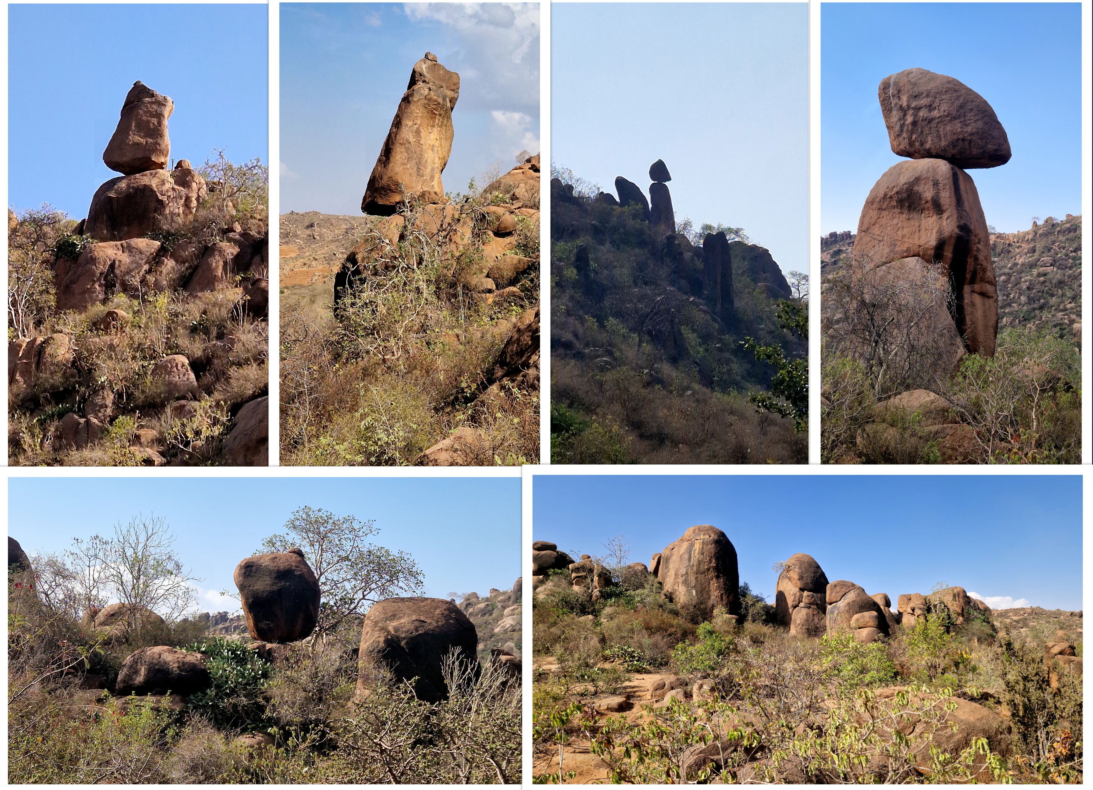 Sur la route, petite balade au milieu des rochers qui ne teinnent en équilibre que sur une petite surface. L'équilibre de la Nature est remarquable. Mais les rochers qui n'ont pas tenu en équilibre, sont tombés !!!