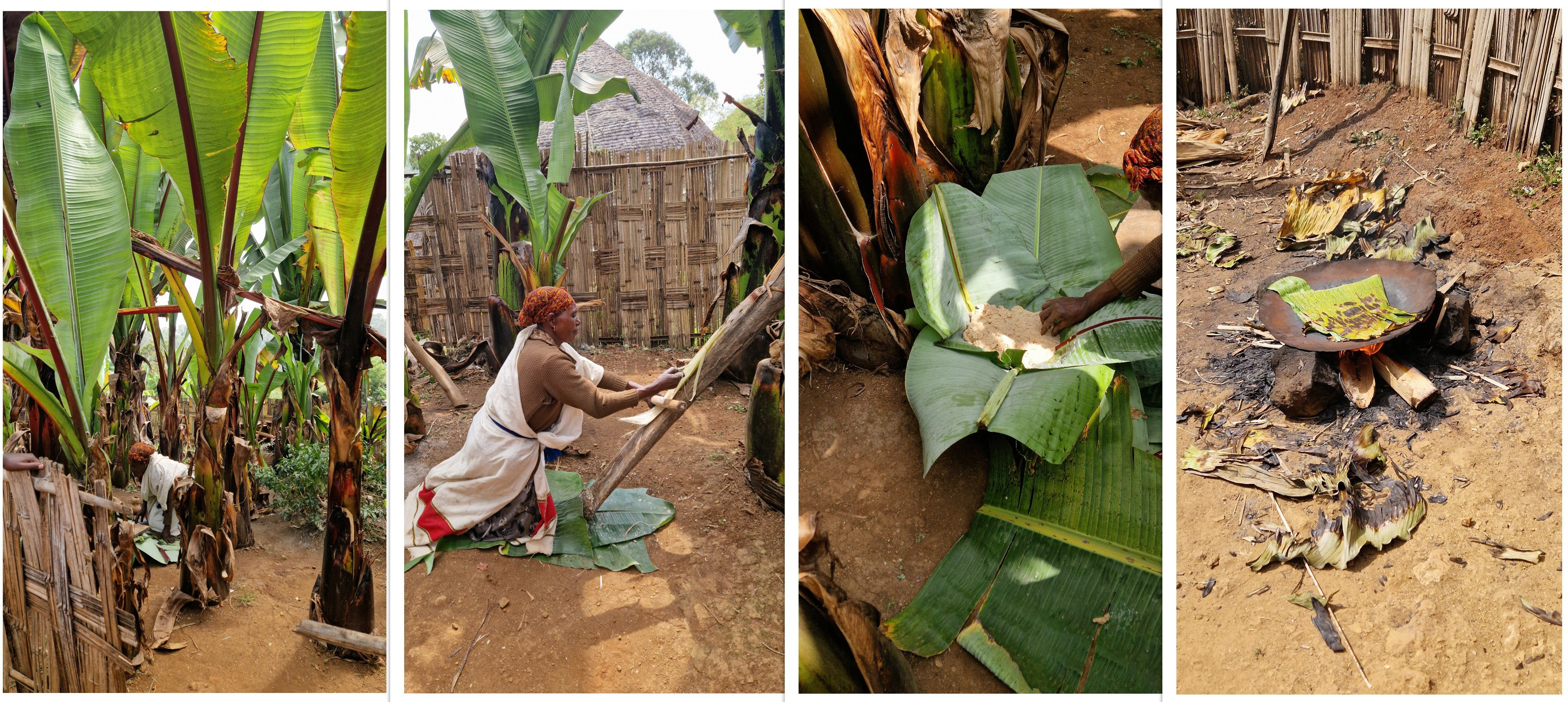 Leur alimentation est essentiellement basée sur le faux bananier (même feuilles, mais pas de bananes !). L'intérieur de l'écorce est rapé pour obtenir une sorte de farine qui est mélangée à l'eau. Des crêpes sont faites à partir de cette pâte. On mange la crêpe avec des condiments, surtout du piment. Et on boit un alcool fort, type eau de vie.