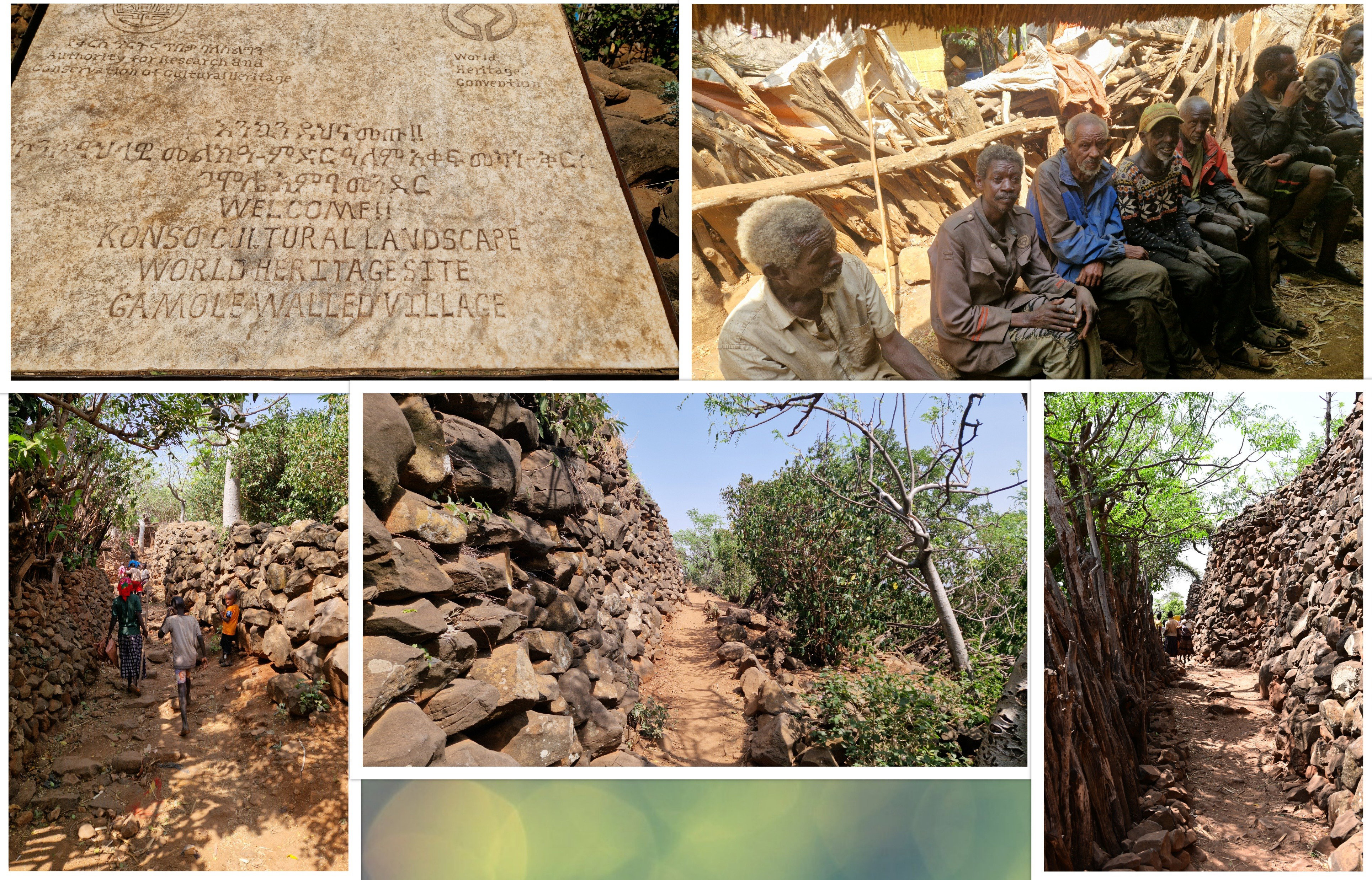 Les villages Konso sont fortifiés par des murs circulaires en pierres. Les maisons se situent à l'intérieur de cette enceinte, et sont aussi entourées d'une clôture en pierres ou en bois. L'ensemble dessine un labyrinthe de ruelles étroites, entre de hauts murs.
