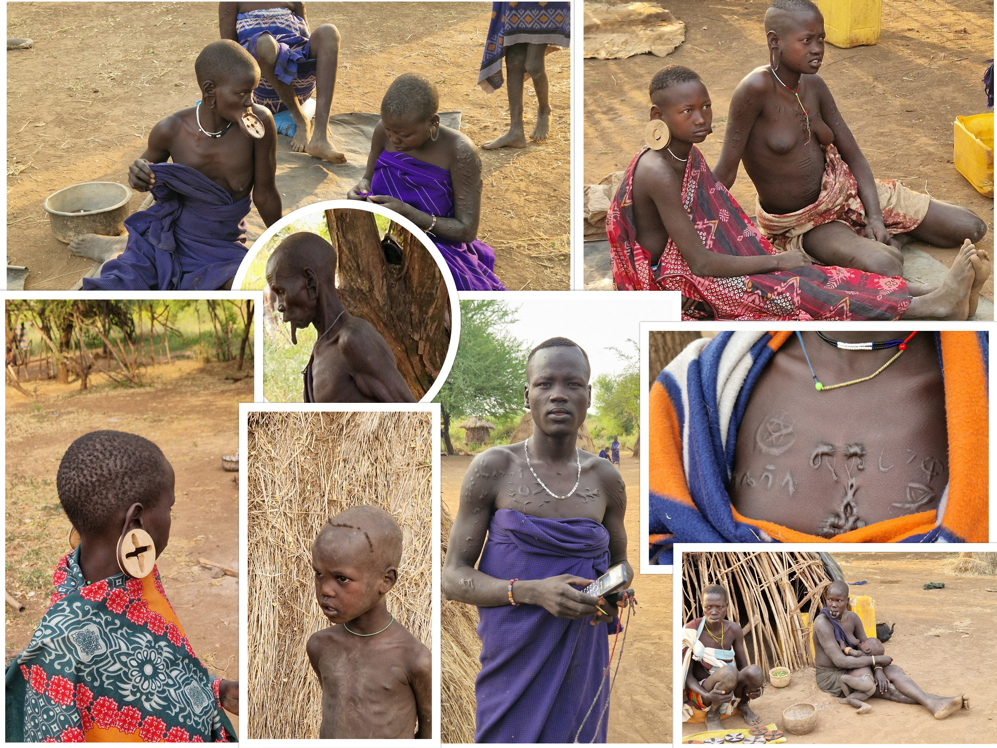 Les femmes et les hommes portent des scarifications, et les garçons ont des coupes de cheveux à dessin.
