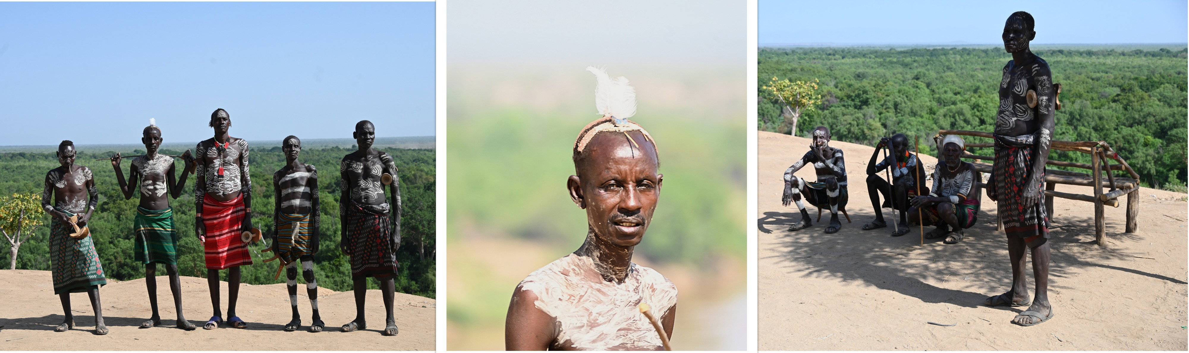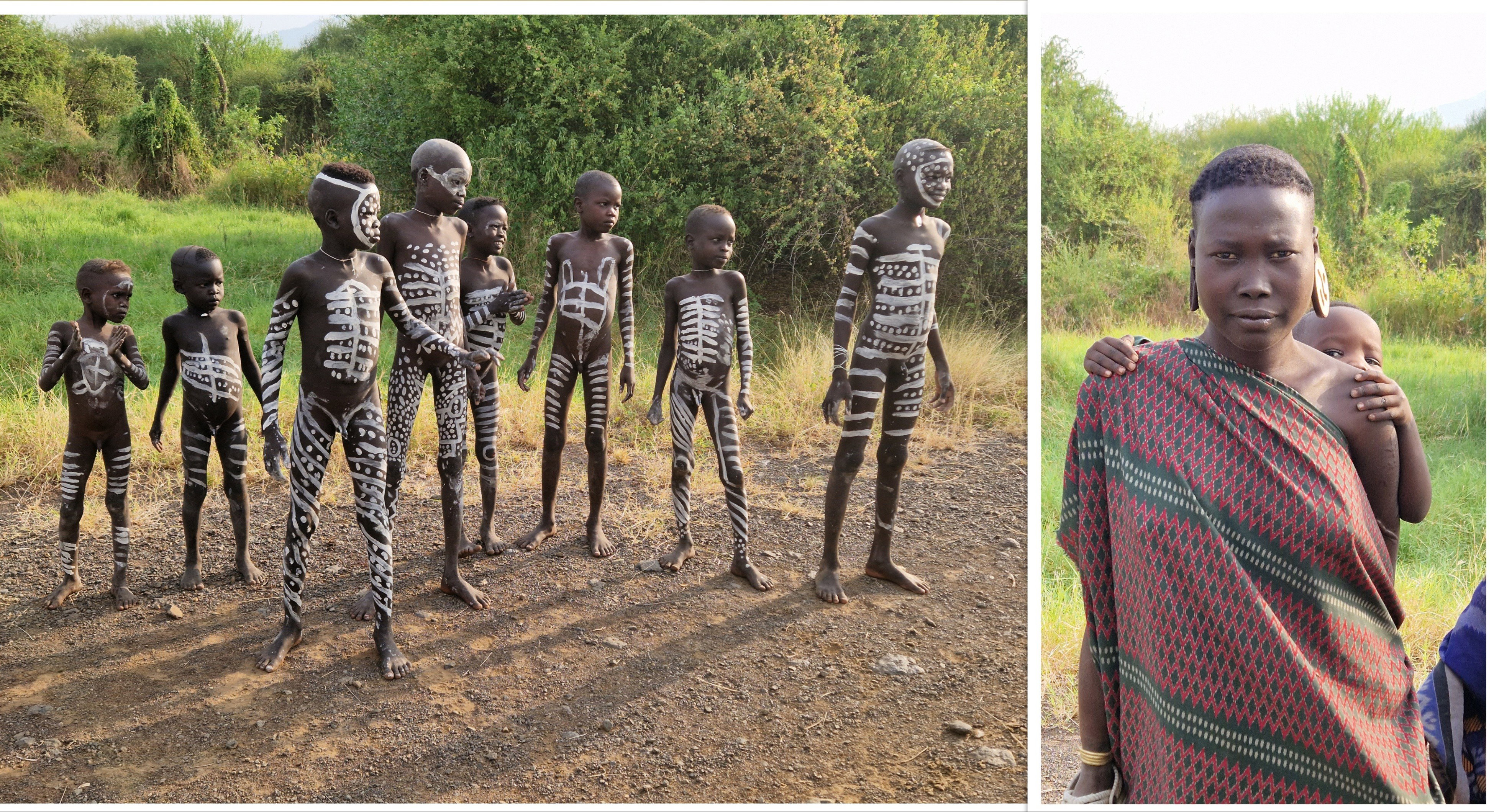 Les hommes se lavent tous les soirs dans l'Omo, et se peignent tous les maatins. Les personnes que nous avons vues, revêtues de peintures corporelles, ne le faisaient pas pour le touriste, mais par culture.