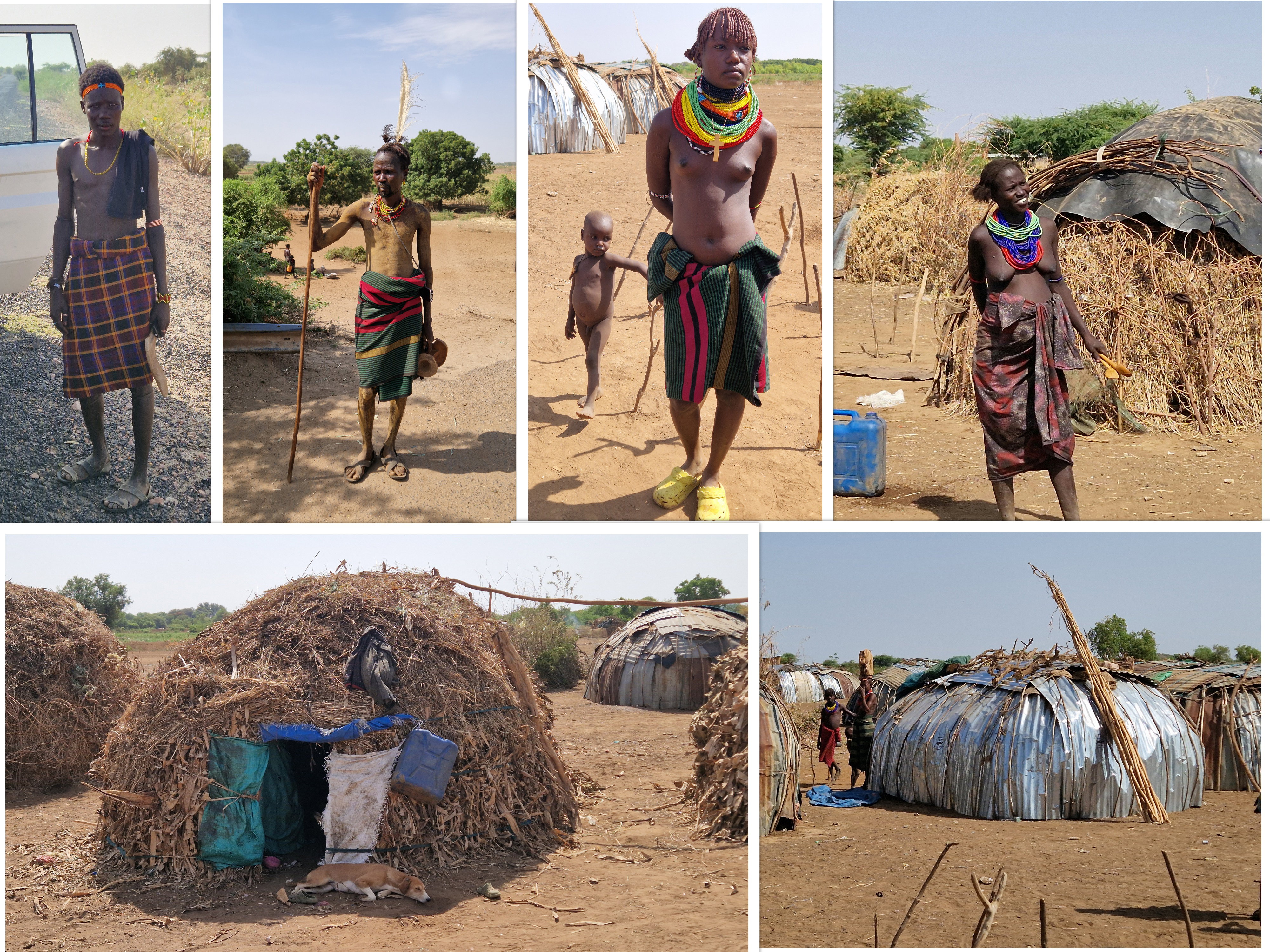 Il faut noter que le village des Dassanechs se trouve à 5 km de la ville frontalière, avec les passage des camions, une sorte de civilisation, une école, une banque, etc... Malgré cela, ils restent repliés sur eux-mêmes, sans être contaminés par cet environnement proche. Bien sûr, comme d'habitude, nous ne voyons qu'un village de l'ethnie, alors qu'il y en a une cinquantaine dont certains inaccessibles.