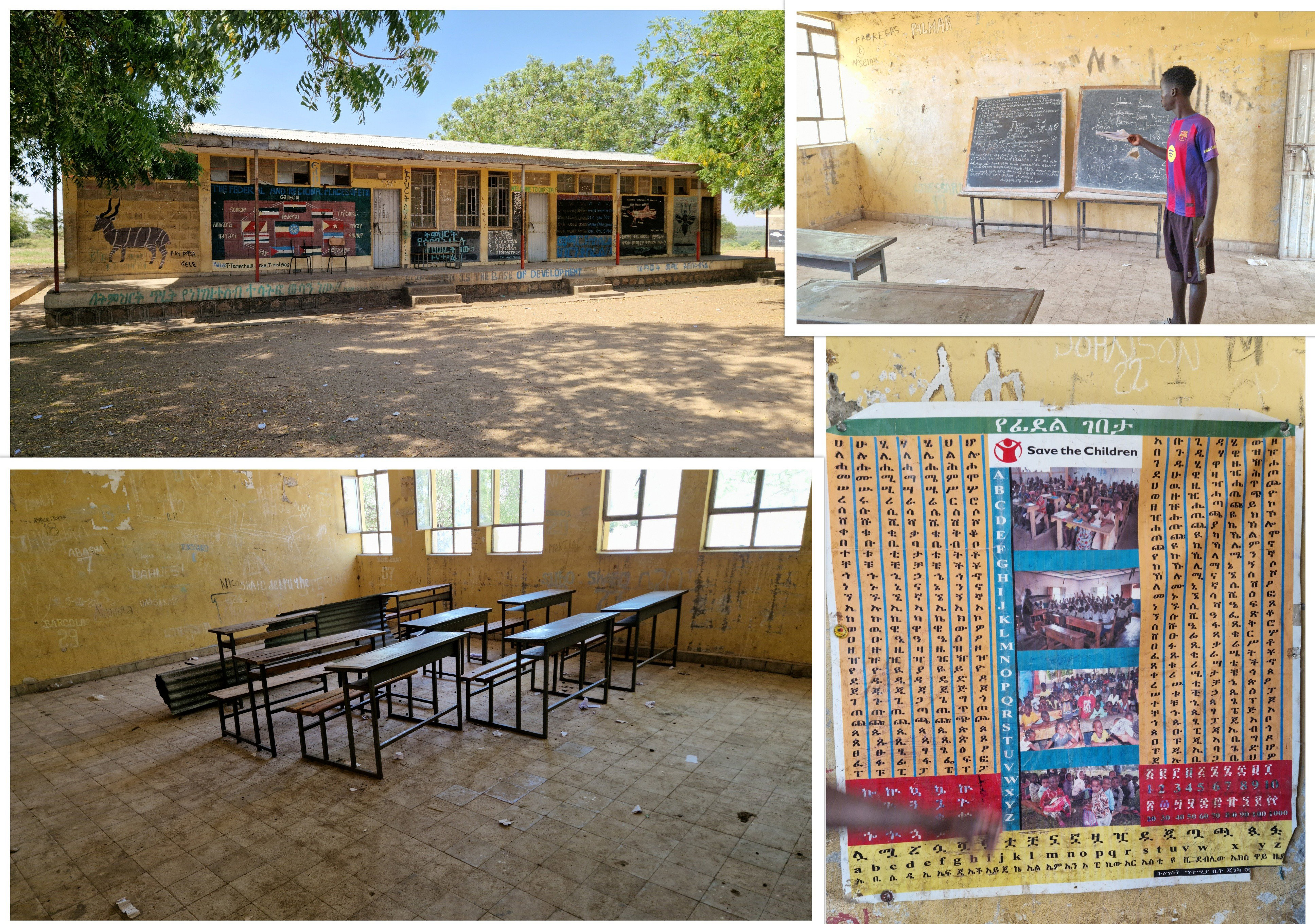 L'école est plutôt bien construite, mais tellement mal entretenue. Ca me change vraiment de celles que j'ai vues au Togo. Ici, tout est sale, le sol, les murs ... Le document en bas à droite est l'alphabet Amharik, avec les lettres et leurs déclinaisons.