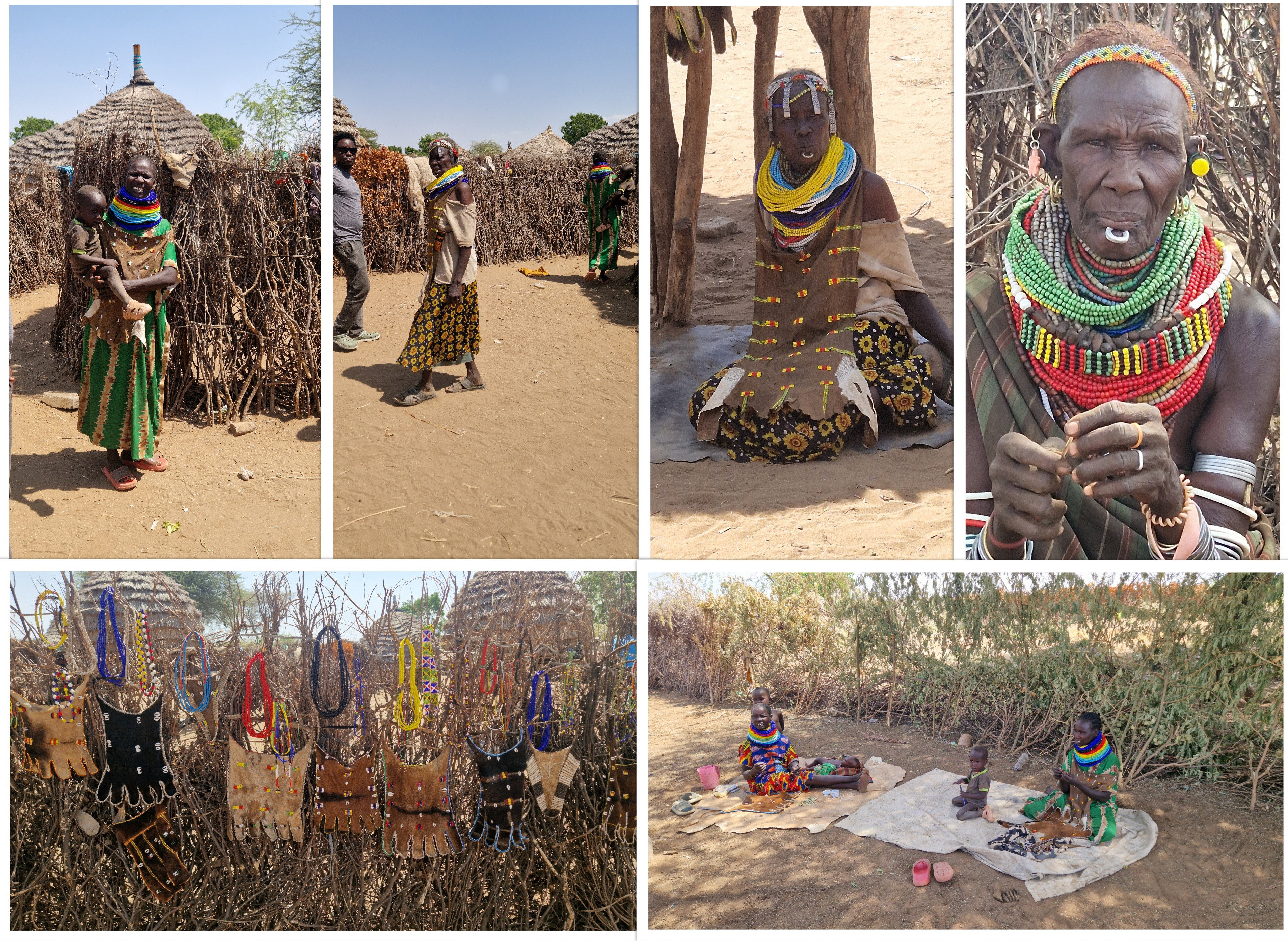 La femme devant la hutte porte un lourd collier avec une proéminence vers l'avant. C'est la première femme. La 2ème femme et plus auront un collier sans cette avancée.