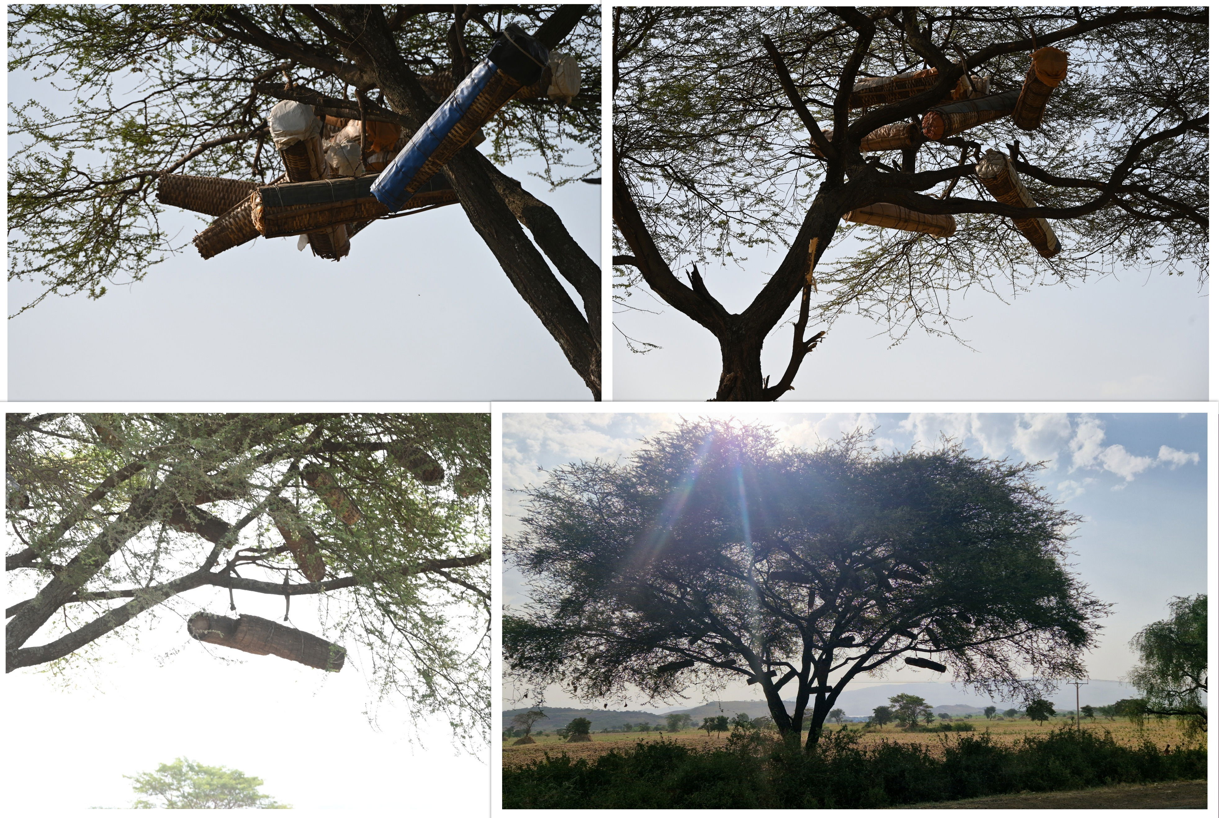 Les ruches sont cylindriques, et attachées en haut des arbres. On en trouve quasiment partout en Ethiopie. Beaucoup de miel, et j'en ai pris à tous les petits déjeuners (il faut dire qu'il n'y a rien d'autre !!!).
